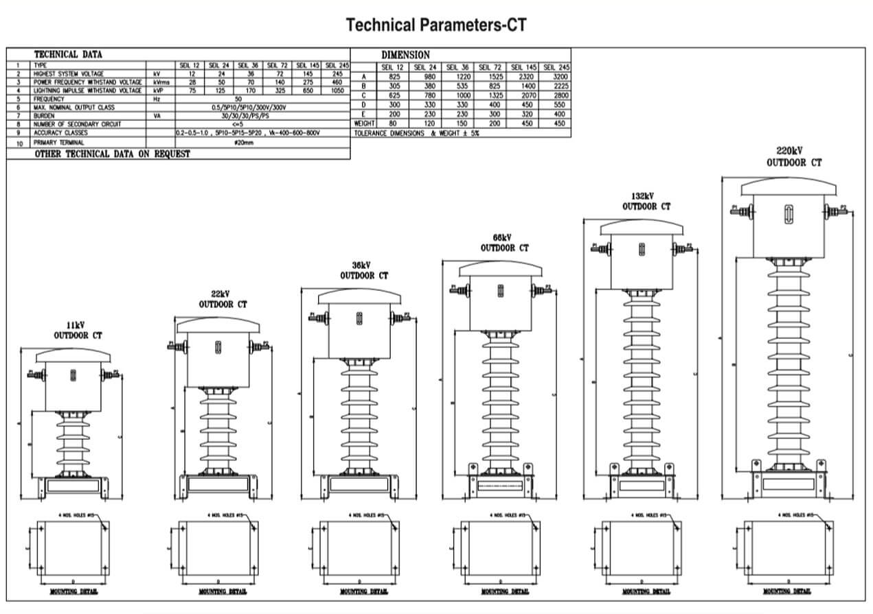 Oil filled current transformers use current transformation principle to convert highline current (in HV system) to a low current reduced by a fixed ratio. The current transformers are designed generally in live tank construction for optimum performance.