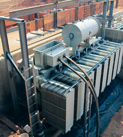 Rating : 2x(4005/2823-2823), 33kV, 2x565 V 12 Pulse Rectifier Transformer with air cooled heat exchangers